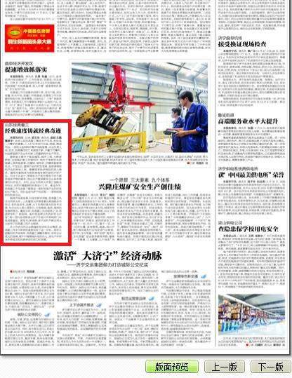 《濟(jì)寧日報(bào)》報(bào)道經(jīng)典集團(tuán):經(jīng)典速度鑄就經(jīng)典傳奇