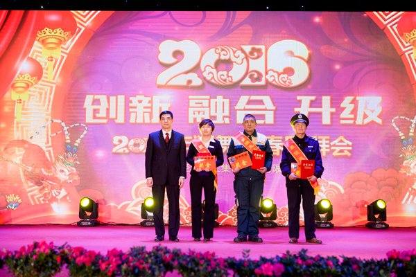 經(jīng)典集團董事長苗樹文首先致新春賀詞,對2015年集團取得的成績進行了總結(jié),鼓舞全體員工精誠團結(jié)、奮發(fā)有為,實現(xiàn)2016年經(jīng)典產(chǎn)業(yè)轉(zhuǎn)型升級、創(chuàng)新發(fā)展、融合發(fā)展,并向全體參會人員和社會各界朋友致以新年的問候。總經(jīng)理杜福生宣讀了《關(guān)于2015年度優(yōu)秀員工和最佳團隊的表彰決定》,通過表彰獎勵,營造了廣大員工學(xué)習(xí)先進、爭當(dāng)楷模的濃厚氛圍。