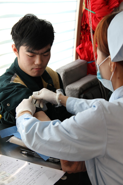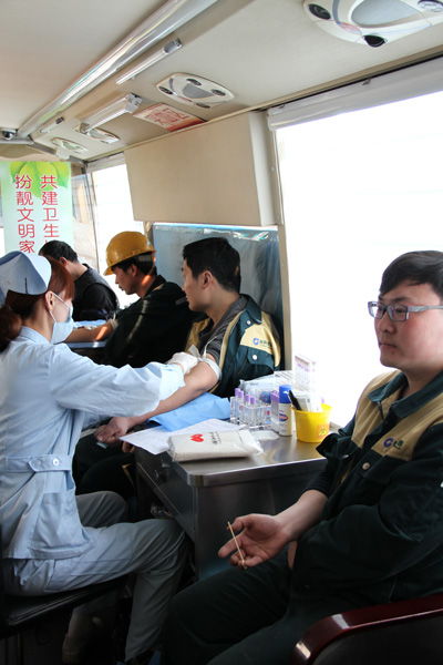 經(jīng)過閱讀學(xué)習(xí)獻血基本常識,填寫登記表,例行體檢幾個環(huán)節(jié)后,志愿者們按順序登上了獻血車。他們在獻血時個個積極勇敢,情緒穩(wěn)定,臉上洋溢著自豪的笑容,獻血結(jié)束后,在現(xiàn)場領(lǐng)取了濟寧市中心血站發(fā)放的無償獻血證。本次獻血活動有166名職工自愿報名參加,其中趙康、吳振興等志愿者更是有多次無償獻血的經(jīng)歷。