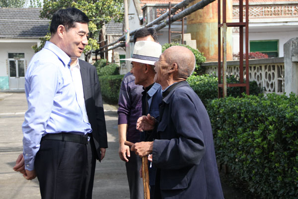在漕河鎮(zhèn)敬老院,初部長和苗董事長一行聽取了有關(guān)負(fù)責(zé)人的情況介紹,與敬老院老人親切握手,了解老人們的飲食起居、身體健康情況,送去了總價值近3萬元的面粉、大米、色拉油、保溫壺、棉被等慰問品,表達了對老人們的節(jié)日祝福。