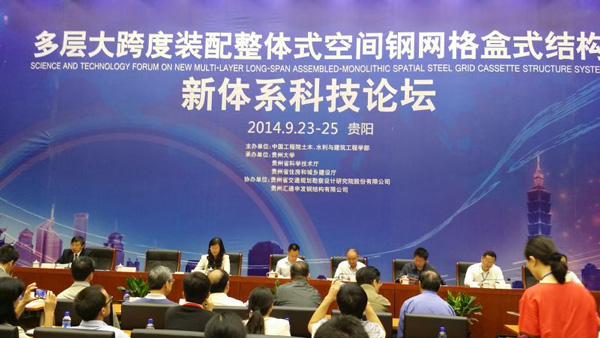 馬克儉院士在專題報告上介紹到,空間網(wǎng)格結(jié)構(gòu)來源于生活實踐和工程實踐,無論是飛機、貨輪等工程領(lǐng)域幾乎都采用網(wǎng)格結(jié)構(gòu),但在建筑上的應(yīng)用目前是第一次。馬克儉“盒式結(jié)構(gòu)新體系”適用于2至4層建筑,跨度達39米,采用現(xiàn)場裝配的方式布局空間鋼材,形成具有盒式結(jié)構(gòu)設(shè)計理念的特點,可以在原來修建單層廠房的土地上修建多層廠房,使原來用混凝土材料不能修建的大跨度工業(yè)與公共建筑,采用該體系能夠得以實現(xiàn)。該體系具有21項自主知識產(chǎn)權(quán),對于保證建筑多功能應(yīng)用、節(jié)約土地資源、提高土地利用效率、促進生態(tài)文明建設(shè)具有十分重要的意義。貴州省人民政府副秘書長潘小林認為,馬克儉“盒式結(jié)構(gòu)新體系”在有限的土地資源上,采用鋼網(wǎng)格盒式結(jié)構(gòu)修建綠色建筑,是建筑科技創(chuàng)新成果推動社會經(jīng)濟發(fā)展的典范。