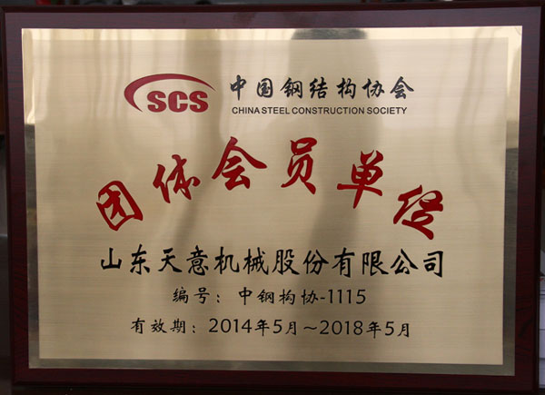 熱烈祝賀天意機(jī)械成功加入中國(guó)鋼結(jié)構(gòu)協(xié)會(huì)
