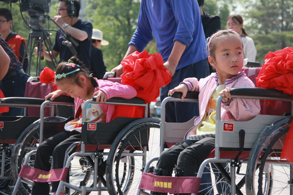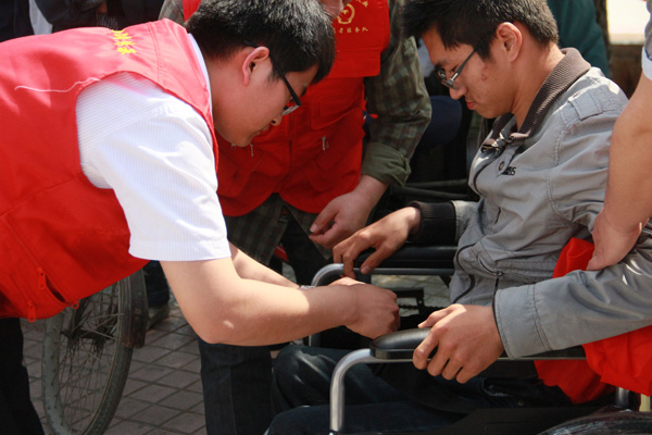 儀式結(jié)束后,經(jīng)典集團根據(jù)活動現(xiàn)場殘疾人的報名情況,組織志愿者把一批輪椅送到殘疾人朋友家中,表達對殘疾人朋友的慰問,受到了殘疾人朋友的真誠歡迎。