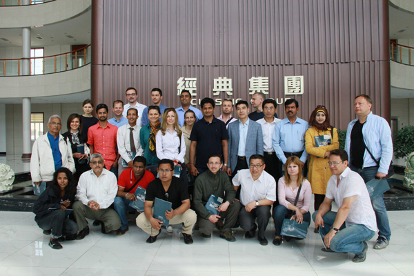 亞歐二十六國(guó)政府官員及行業(yè)協(xié)會(huì)領(lǐng)導(dǎo),不顧勞途奔波,下車后就興致勃勃的參觀了經(jīng)典集團(tuán)辦公樓,為其古典與現(xiàn)代結(jié)合的優(yōu)美辦公環(huán)境所嘆服,隨后苗董帶領(lǐng)客人一行,參觀了職工活動(dòng)中心,生產(chǎn)車間,客人詳細(xì)了解了車間生產(chǎn)狀況及員工的福利待遇情況,最后在會(huì)議中心,集團(tuán)國(guó)際事業(yè)部負(fù)責(zé)人與考察團(tuán)一行進(jìn)行了座談,客人一行詳細(xì)了解了公司的概況以及海外市場(chǎng)業(yè)務(wù)進(jìn)展?fàn)顩r,集團(tuán)國(guó)際事業(yè)部負(fù)責(zé)人一一解答,座談后與斯里蘭卡貿(mào)易和投資促進(jìn)會(huì)秘書(shū)長(zhǎng)哈尼爾先生(Nihal Aluvihare)及尼泊爾、匈牙利、保加利亞等國(guó)簽署了對(duì)外貿(mào)易合作協(xié)議。