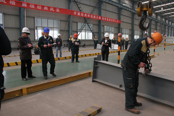 比賽在集團(tuán)公司輕鋼車間進(jìn)行。比賽活動(dòng)將理論學(xué)習(xí)和實(shí)踐操作相結(jié)合,就安全知識(shí)的理解、吊車性能的掌握、實(shí)際吊裝操作三項(xiàng)內(nèi)容進(jìn)行了競賽。實(shí)際操作中設(shè)計(jì)了起吊鋼構(gòu)件撞球動(dòng)作,要求在規(guī)定的時(shí)間內(nèi)準(zhǔn)確完成技術(shù)動(dòng)作。經(jīng)過緊張而激烈的比賽和成績綜合評(píng)比,烤梁班組的馮勇獲得起重機(jī)技能比賽第一名,門焊機(jī)班組李寶光、烤梁班組的張世凱分別獲得起重機(jī)技能比賽二名;組立機(jī)班組黃元德、拼裝班組孔祥文、史保健分別獲得起重機(jī)技能比賽第三名,并授予“青年崗位技術(shù)能手”榮譽(yù)稱號(hào);姜?jiǎng)倮?/SPAN>、顧凱李小明、李慶分別獲得起重機(jī)技能比賽優(yōu)秀獎(jiǎng),并授予“技能操作優(yōu)勝者”榮譽(yù)稱號(hào)。