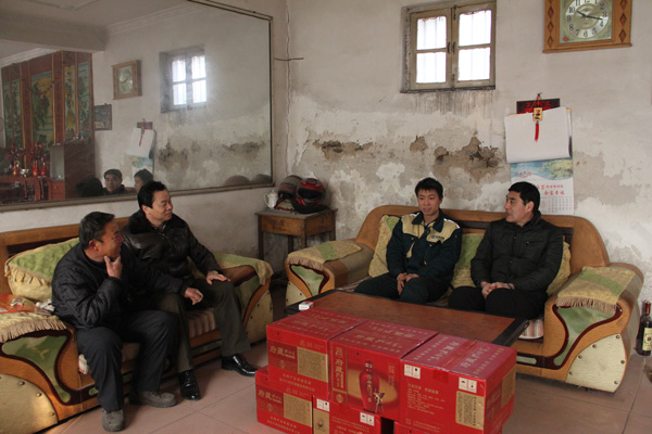 每到一戶,集團領(lǐng)導與職工家屬親切握手,面對面促膝交談,了解職工的家庭收入、子女入學、外出打工等有關(guān)情況,送去大米、面粉、食用油等生活物資和600元慰問金。苗董事長表示,經(jīng)典集團將一如既往的關(guān)愛職工,特別是困難家庭職工,讓職工感受到公司大家庭的溫暖,切實解決職工的生活困難,使職工全身心投入到公司發(fā)展中去。并叮嚀他們?nèi)缛粲惺裁蠢щy可以提出來,集團公司會傾力幫助,公司就是一個大家庭,每位職工困難,都會牽動整個領(lǐng)導班子的心,集團公司會盡最大努力,想盡一切辦法,最大限度地讓每位困難職工及其家屬過上一個安樂祥和的春節(jié)。