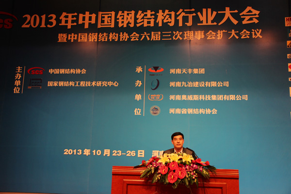 10月23日-26日,“2013年中國(guó)鋼結(jié)構(gòu)行業(yè)大會(huì)暨中國(guó)鋼結(jié)構(gòu)協(xié)會(huì)六屆三次理事會(huì)擴(kuò)大會(huì)議”在河南鄭州黃河迎賓館召開。會(huì)議由中國(guó)鋼結(jié)構(gòu)協(xié)會(huì)、國(guó)家鋼結(jié)構(gòu)工程技術(shù)研究中心主辦;河南鋼結(jié)構(gòu)協(xié)會(huì)等單位承辦。會(huì)議邀請(qǐng)了國(guó)務(wù)院國(guó)資委行業(yè)協(xié)會(huì)聯(lián)系辦公室副主任張濤、河南省人大常務(wù)委員會(huì)副主任儲(chǔ)亞平、中國(guó)鋼鐵工業(yè)協(xié)會(huì)常務(wù)副會(huì)長(zhǎng)朱繼民、中國(guó)鋼結(jié)構(gòu)協(xié)會(huì)會(huì)長(zhǎng)(中冶建筑研究總院院長(zhǎng))岳清瑞、常務(wù)副會(huì)長(zhǎng)劉毅、副會(huì)長(zhǎng)賀明玄、秘書長(zhǎng)劉萬(wàn)忠及副會(huì)長(zhǎng)、常務(wù)理事單位等出席會(huì)議。經(jīng)典集團(tuán)董事長(zhǎng)苗樹文、生產(chǎn)總經(jīng)理王忠策等公司領(lǐng)導(dǎo)參加了此次大會(huì),經(jīng)典集團(tuán)榮獲中國(guó)鋼結(jié)構(gòu)協(xié)會(huì)第六屆理事會(huì)理事單位,苗樹文董事長(zhǎng)為中國(guó)鋼結(jié)構(gòu)協(xié)會(huì)第六屆理事會(huì)理事。