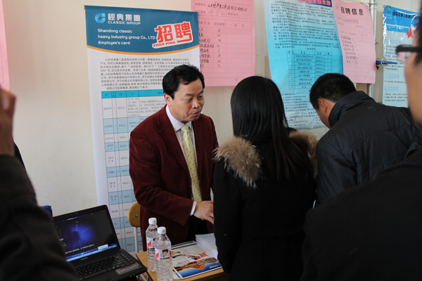 3月20日,經典集團組織參加青島理工大學2013年春季畢業(yè)生雙選會。我公司董事長苗樹文,總經理杜福生等領導一同參加了此次雙選會。在雙選會現場與畢業(yè)生面對面進行親切交流,對于企業(yè)和畢業(yè)生來說,是一次很好的雙選機會,更是一場供需見面的盛宴。見面會現場人潮涌動,異?;鸨?,畢業(yè)生與用人單位進行積極交流、雙向選擇,成效十分顯著。