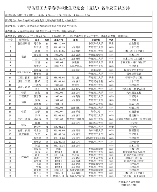 雙選會現場畢業(yè)生共投遞我公司簡歷286份,經過初試篩選,進入復試人員38位,具體復試安排及進入復試人員名單請參考《青島理工大學春季畢業(yè)生雙選會(復試)名單及面試安排》。