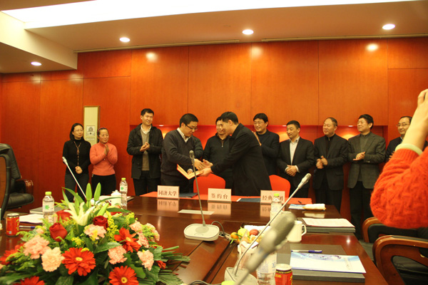 1月18日下午,我公司與同濟大學(xué)舉行長期戰(zhàn)略合作協(xié)議簽約暨授牌儀式在會議室隆重舉行。集團公司苗樹文董事長與同濟大學(xué)土木工程學(xué)院李元齊教授簽署“關(guān)于經(jīng)典集團與同濟大學(xué)合作意向協(xié)議書”,并向李教授頒發(fā)了聘書。出席此次會議的有市委常委宣傳部部長初建偉,開發(fā)區(qū)主任周廣全,發(fā)改局劉局長,經(jīng)信局韓局長,科技局周局長,國土資源局王局長等。會議由上海市科技成果轉(zhuǎn)化促進會秘書長姚偉民主持。