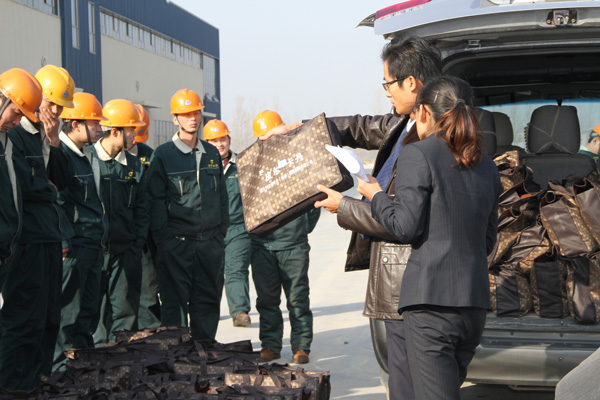 隨著天氣不斷轉涼,公司切實為職工健康著想,做好職工保暖工作,特斥資140多萬元,在濟寧貴和購物中心訂購了一批高檔兔毛“皮爾卡丹”皮衣,并分批發(fā)放到每一個員工手中。