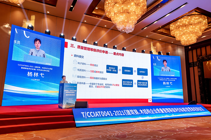 《建筑鋼、木結(jié)構企業(yè)質(zhì)量管理等級評價標準》起草人、高級認證審核員楊杏弟對標準的起草背景、意義、實施等進行了介紹。