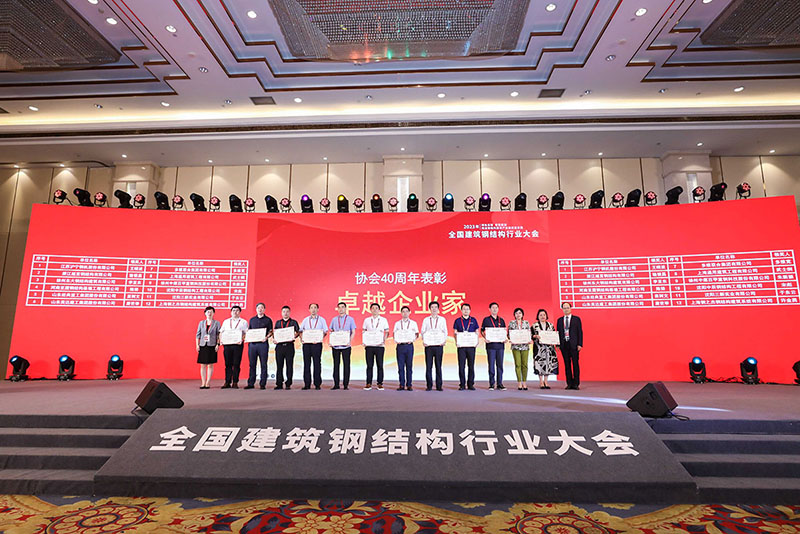 2023年6月2-4日2023年全國建筑鋼結(jié)構(gòu)行業(yè)大會在上海隆重召開,大會隆重表彰全國建筑鋼結(jié)構(gòu)行業(yè)先進(jìn)集體和先進(jìn)個人,中國建筑金屬結(jié)構(gòu)協(xié)會建筑鋼結(jié)構(gòu)分會副會長、山東經(jīng)典重工集團(tuán)股份有限公司董事會主席苗樹文帶隊(duì)參會,會上獲得多項(xiàng)榮譽(yù)。
