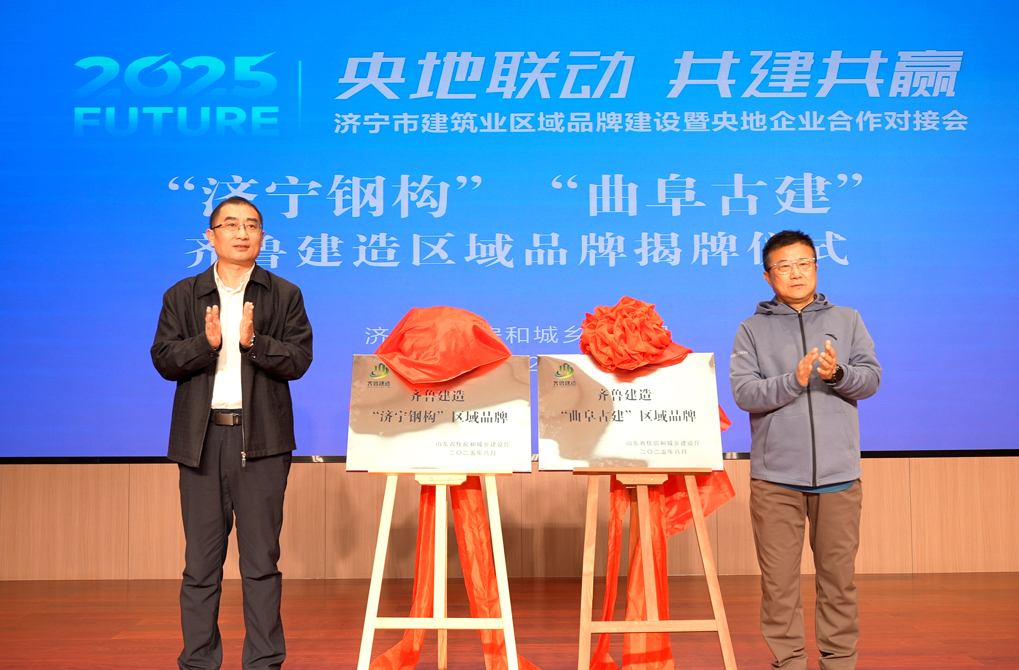 市住建局李振副局長、市建筑業(yè)協(xié)會(huì)郭志明會(huì)長共同為“濟(jì)寧鋼構(gòu)”“曲阜古建”齊魯建造區(qū)域品牌揭牌